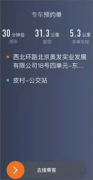3、等待审核通过后,我们就可以在平台上进行接单了,每次接单都会显示用车时间、公里数、目的地等信息,你可以选择性接单;