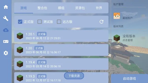 2、账号创建成功后,要选择游戏栏,在这里下载游戏本体,从1.0到最新版本都有,大家可以自行选择。