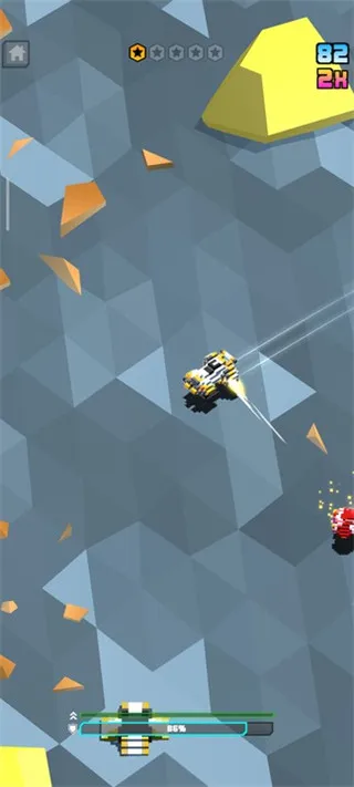 1、丰富射击体验:玩家驾驶方块构成的超级飞船,穿梭在敌人的枪林弹雨中,利用机关枪、激光炮、火箭和导弹等各种杀伤力武器进行反击,感受以射击元素为基础的战斗,体验不一样的射击场景。